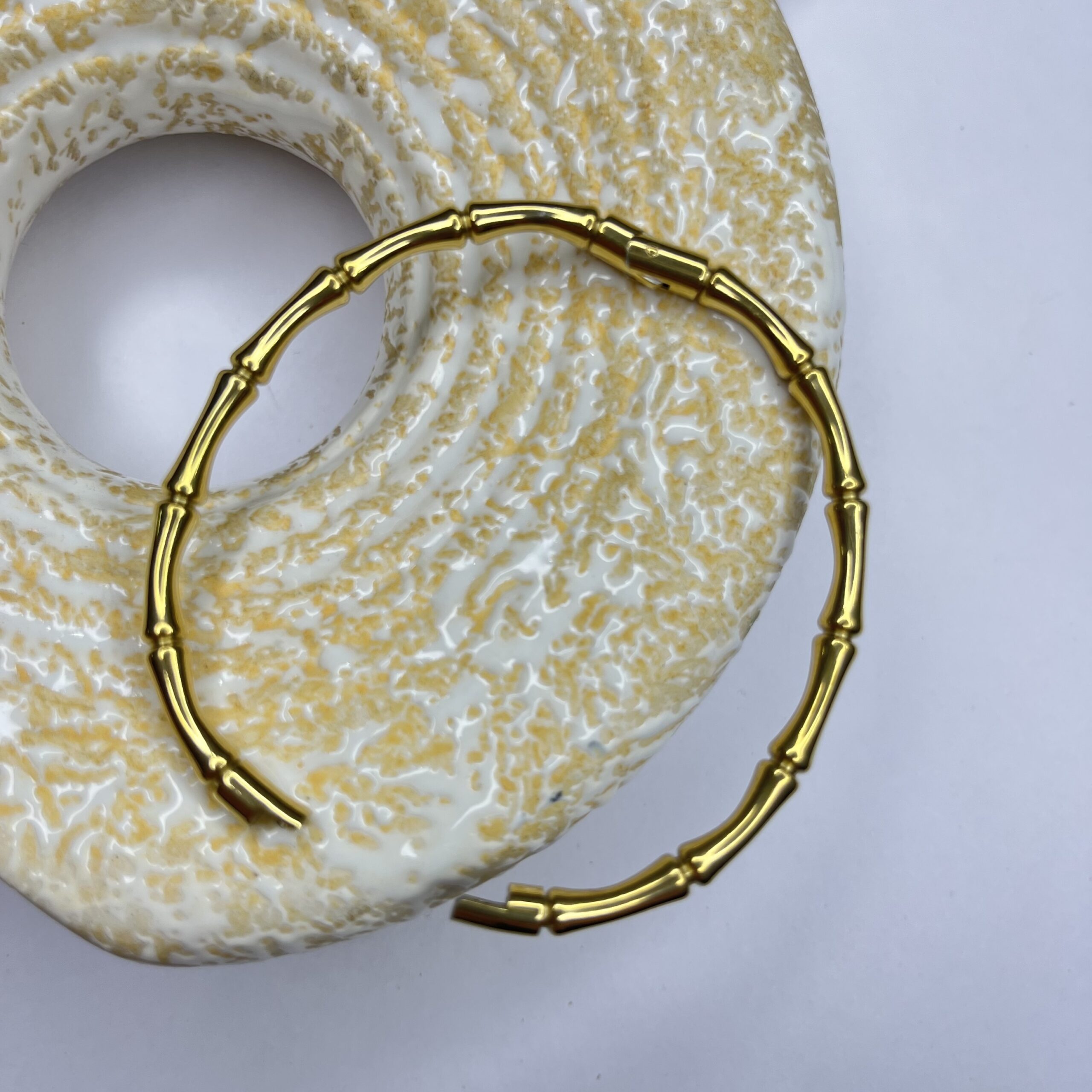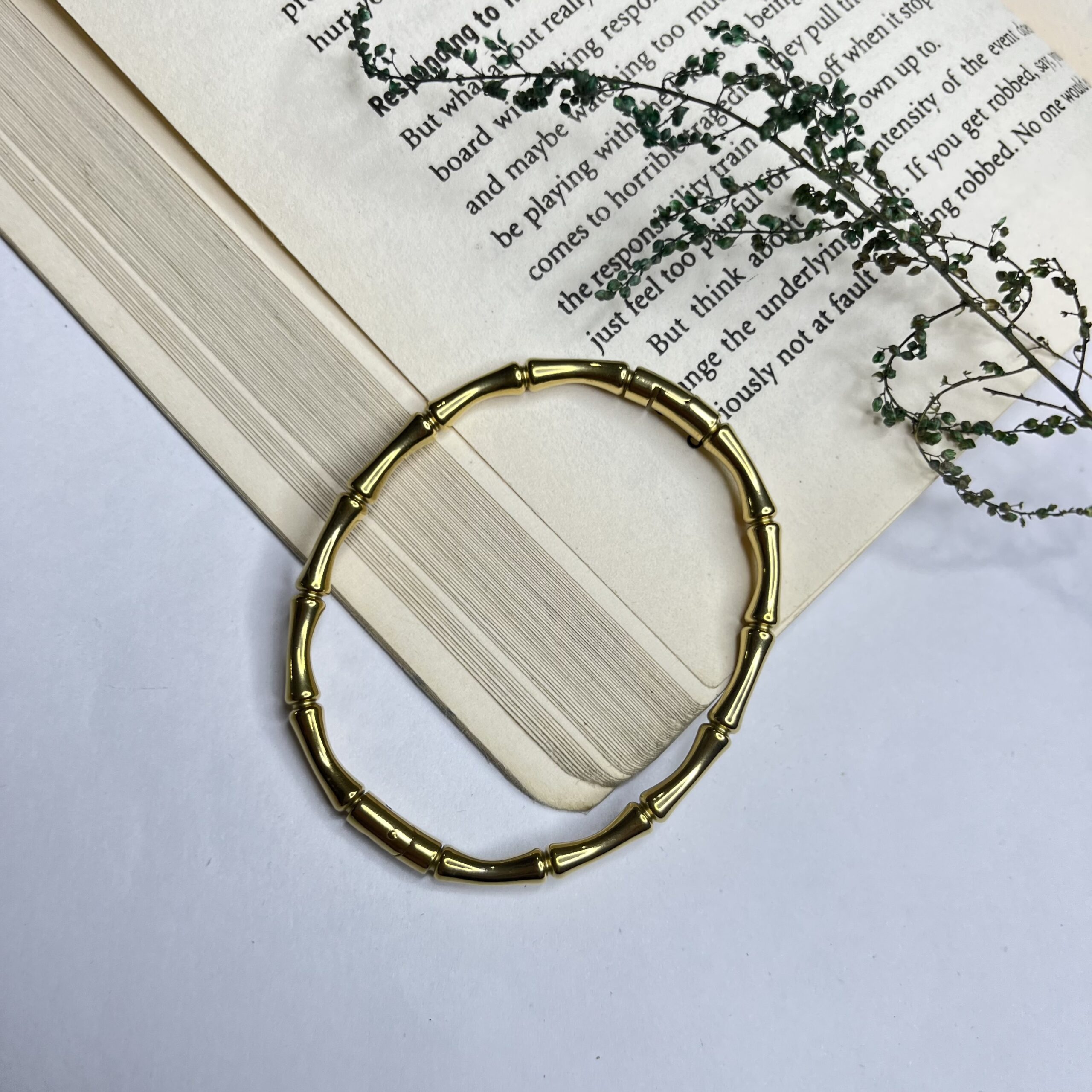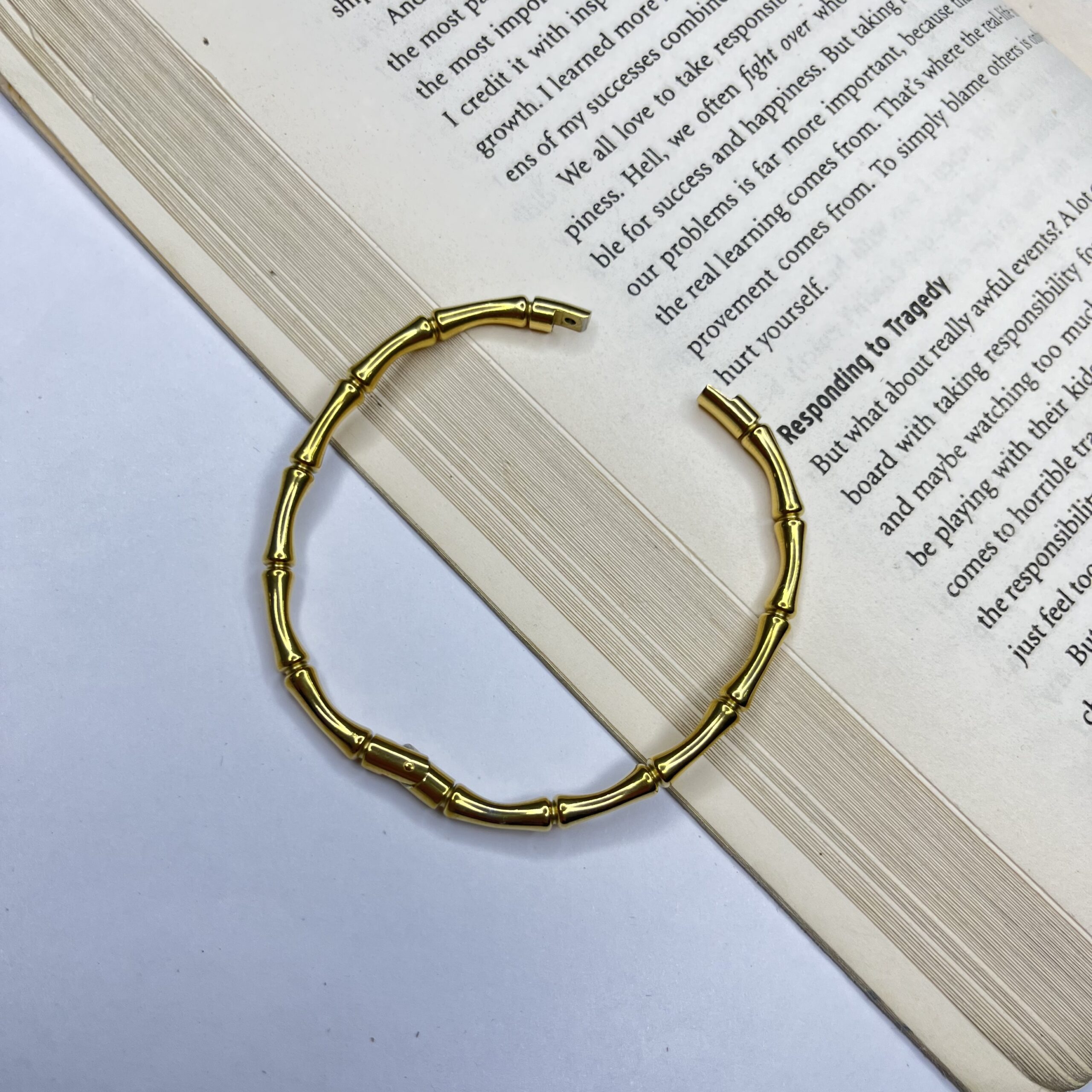 The Eternal Bamboo Bangle is a tribute to quiet strength and graceful resilience. Sculpted in golden segments that echo the rhythm of bamboo stalks, it carries the spirit of growth, balance, and enduring beauty. Each curve whispers of nature’s wisdom—flexible yet unbreakable, rooted yet reaching.