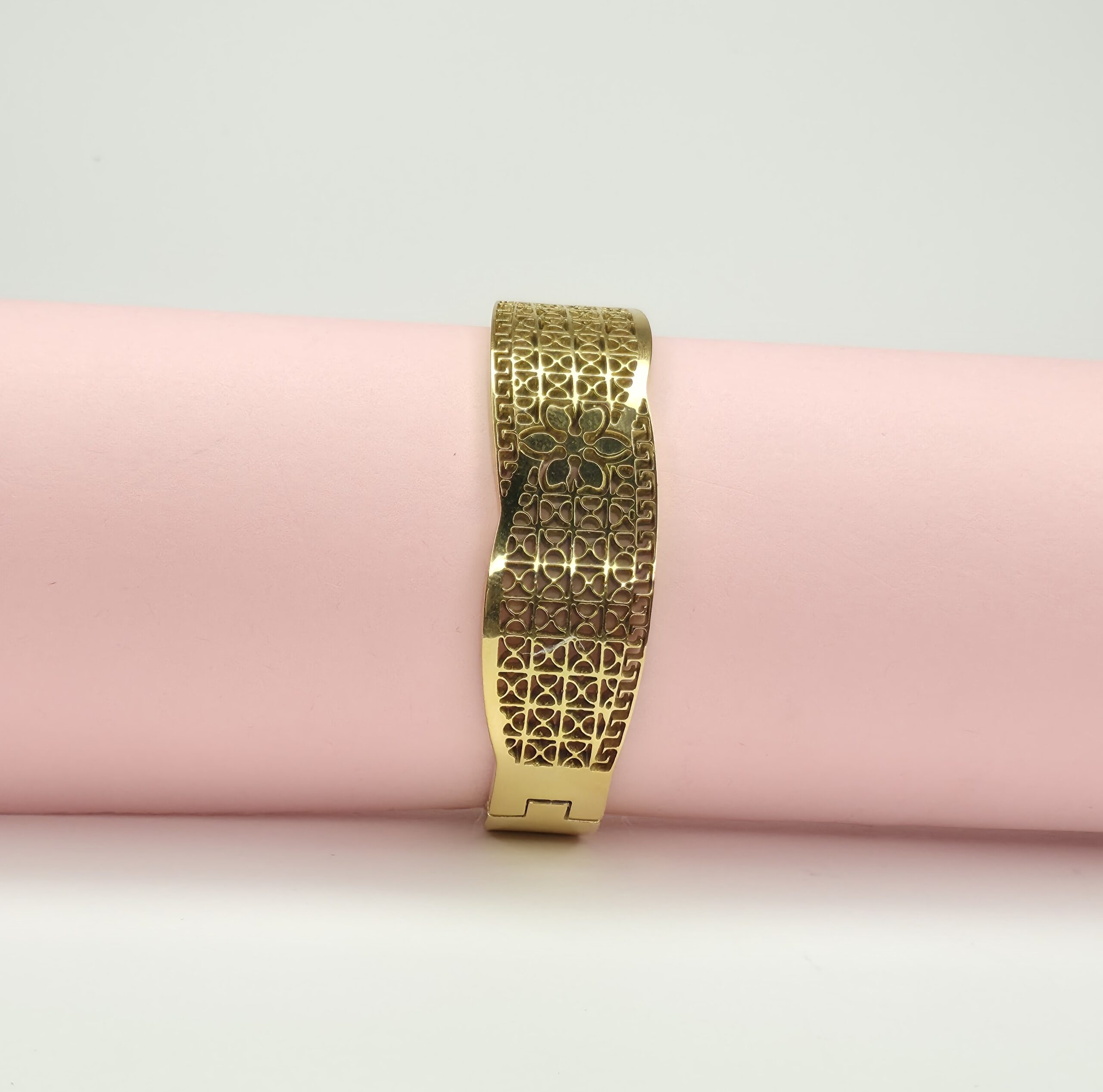 It’s for the soul who blossoms with intention, who wears craftsmanship like poetry and tradition like a whisper. Feminine, intricate, and endlessly elegant—this bracelet is a golden ode to beauty in balance.