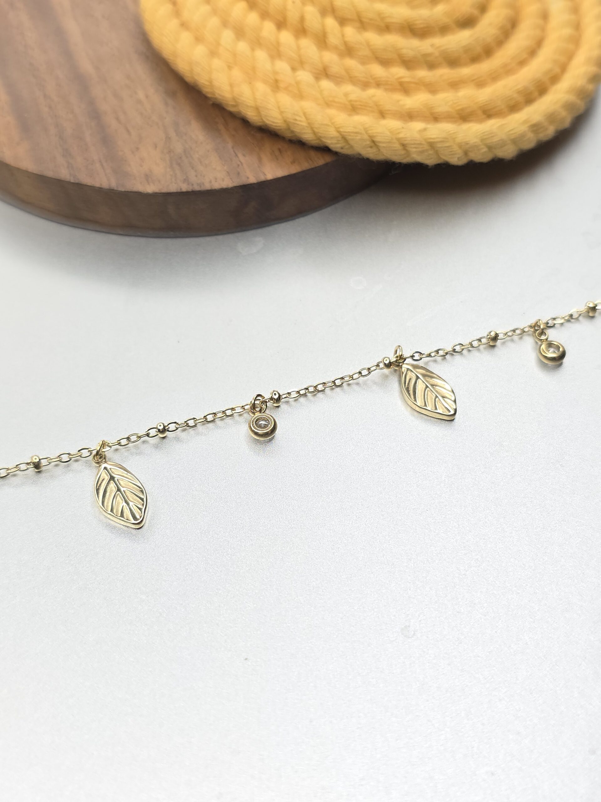 The Golden Leaf Whisper Bracelet is a delicate gold-finish chain adorned with graceful leaf charms and tiny crystal accents that gently catch the light. Inspired by nature’s elegance, the fine detailing and lightweight design make it perfect for everyday wear as well as special occasions. Subtle, stylish, and timeless—this bracelet adds a soft, natural charm to any look.