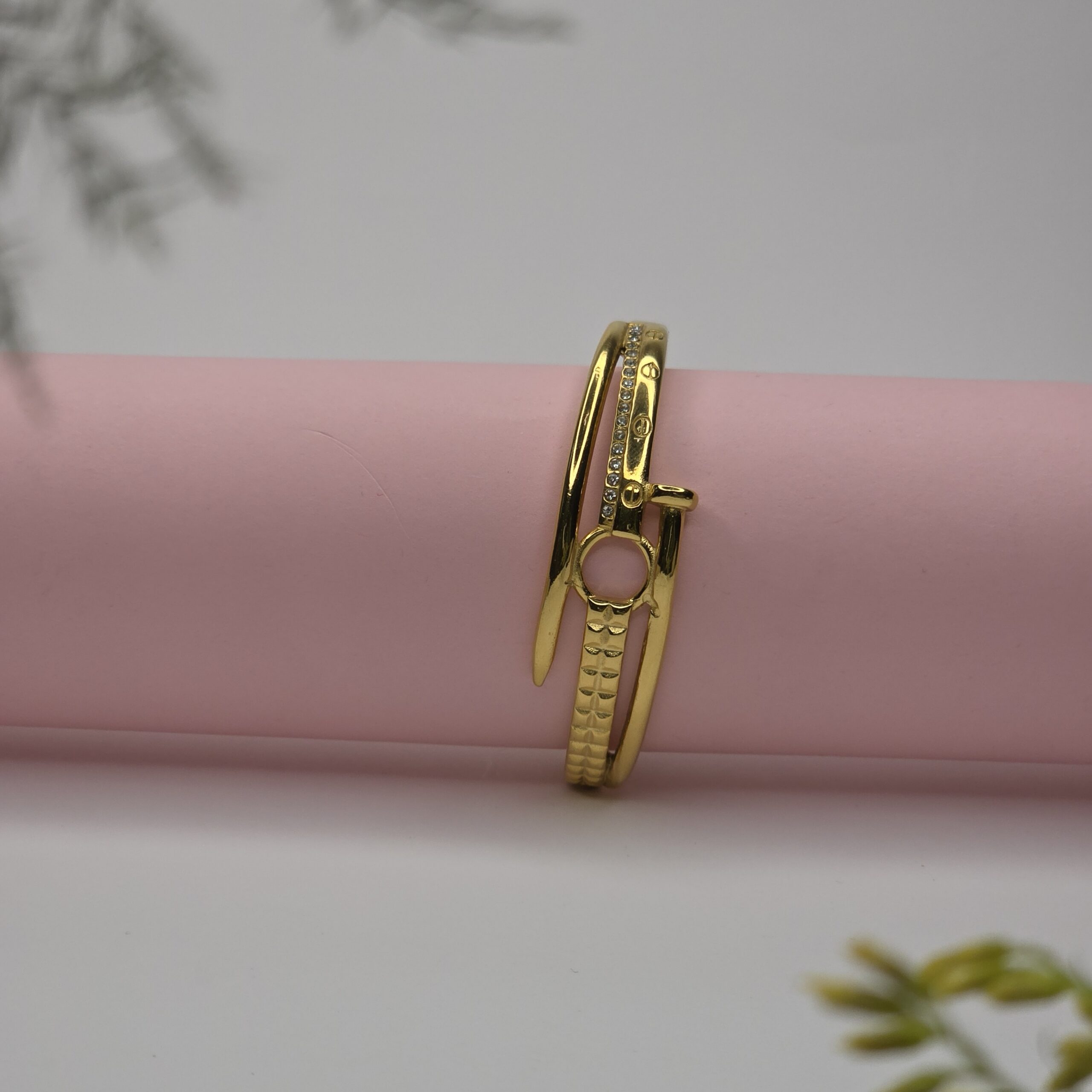 The Surya Crest Bracelet is a radiant tribute to tradition—where engraved floral and circular motifs converge around a central medallion, echoing the sun’s eternal presence. Crafted in luminous gold, each detail is etched with care, creating a piece that feels both sacred and stylish. The clasp blends seamlessly into the design, ensuring both security and grace.