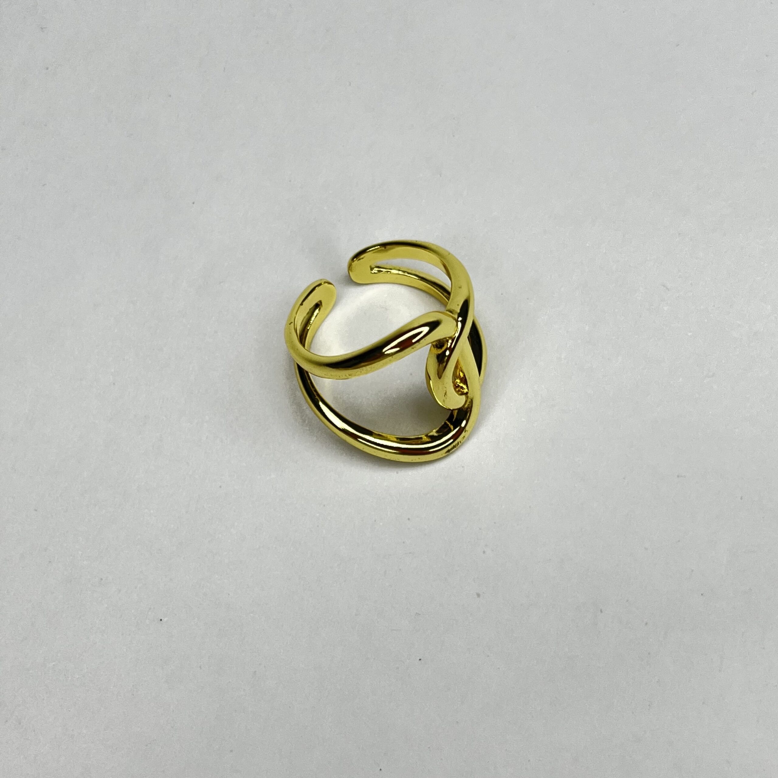 The Twinescence Ring features two golden bands that intertwine in fluid motion—echoing duality, partnership, and the graceful strength of connection. Its knot-like form channels ancient symbols of eternity and spiritual flow. A wearable mantra for those who thrive in harmony and hold beauty in balance.